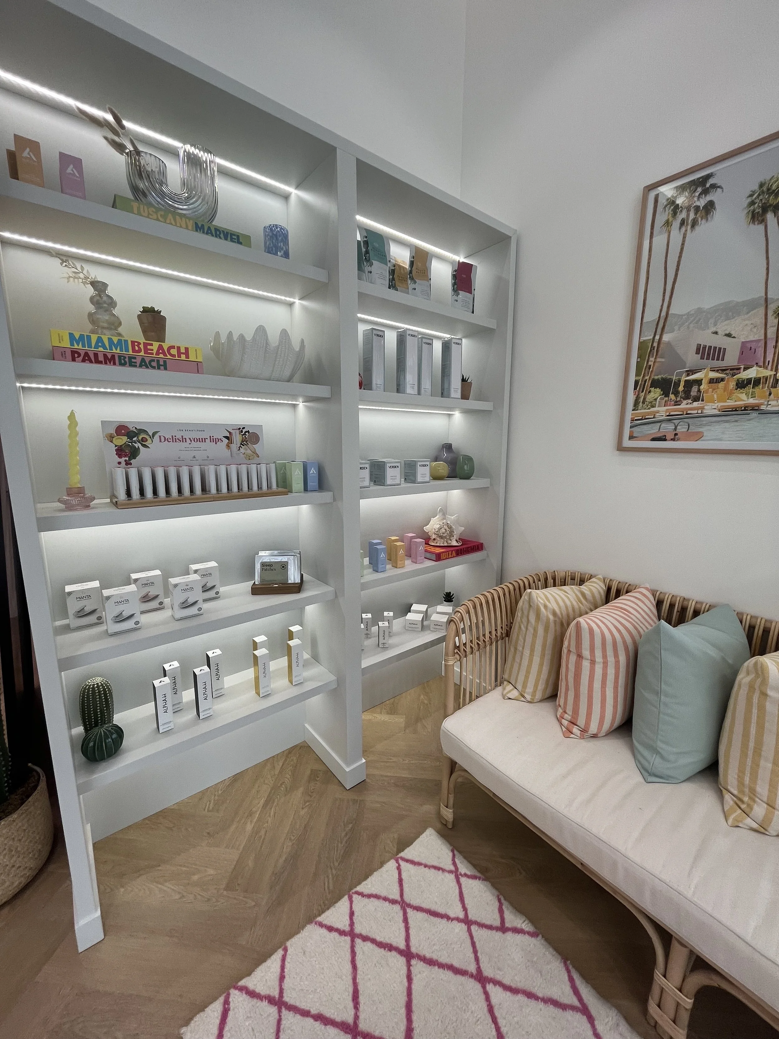 As guests step inside Tannè, located within the Andalus Centro, the salon effortlessly blends mid-century modern and desert-inspired elements, featuring a pristine white palette with vibrant pops of primary colors. Natural light floods through glass panels, illuminating the sleek interior design that mirrors Dubai’s latest luxe tanning salon. Tannè showcases unique and eye-catching furniture pieces, exuding style and sophistication. From slung and elegant soft furnishings to cool posters and a bright pink neon sign that reads “Sunshine State of Mind,” Tannè offers everything visitors desire for the perfect Instagram-worthy experience.